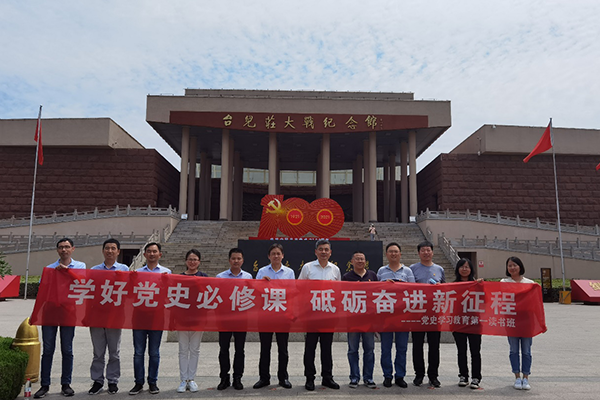 在中国共产党迎来百年华诞之际,为落实好习近平总书记在党史学习教育动员大会上的重要讲话精神,进一步推动党史学习教育走深、走实,6月20日-21日,校党委书记朱爱胜带领“党史学习教育”专题读书班一班学员赴枣庄台儿庄大战纪念馆、台儿庄大战遗址和铁道游击队根据地微山湖红荷党性教育基地,通过实地参观和现场教学相结合的方式,接受精神洗礼和进行党性体检。