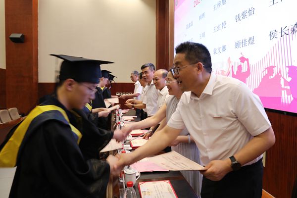 江苏大学学工处杨道建处长宣读了关于表彰2021届江苏大学优秀毕业生的决定,蒿鑫磊等18位同学因学习成绩优良、综合素质全面获评江苏大学2021届“优秀毕业生”称号。必赢杨雪琴副校长宣读了关于表彰江苏大学无锡机电学院优秀毕业生的决定,吴高尚等20位同学荣获表彰。双方领导现场为获表彰同学颁发荣誉证书。