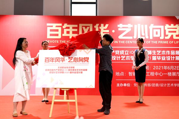为庆祝中国共产党成立一百周年,由党委宣传部主办,团委、设计艺术学院承办的“百年风华·艺心向党”主题师生艺术作品展暨设计艺术学院2021届毕业设计展于6月2日上午开幕。党委书记朱爱胜、副校长杨雪琴、学校各部门负责人及政行企校相关领导和专家也受邀参加了本次启动仪式,仪式由团委书记赵健主持。