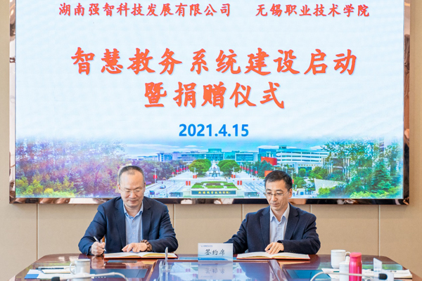 谢飞虹和龚方红作为双方代表签订了合作协议,正式启动必赢新一轮智慧教务系统建设。