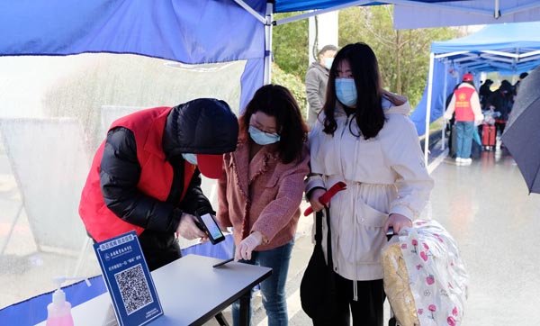 报到日当天,同学们在校门口通过体温测量、锡康码和返校码核验,无异常后进入校园。机关党工委组织20名党员志愿者,为返校同学做好服务工作。