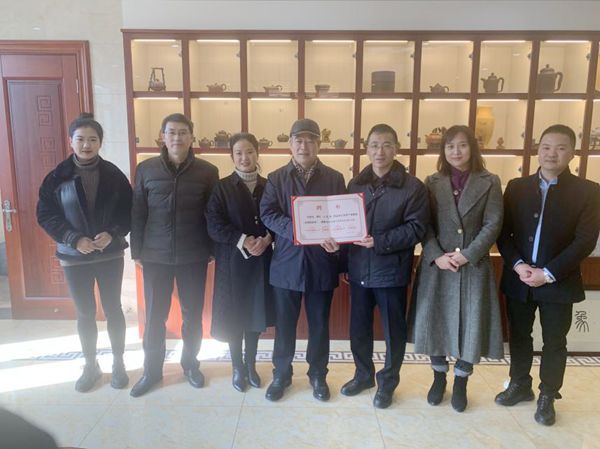 1月15日上午,必赢龚方红校长带队,走访了沈建强筋纹器紫砂艺术中心,为研究员级高级工艺美术大师沈建强颁发江苏省产业教授证书。