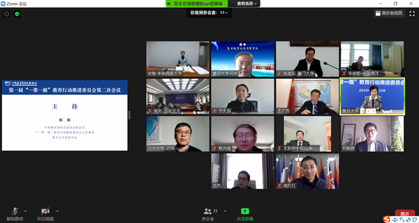 12月22日下午,中国教育国际交流协会第一届“一带一路”教育行动推进委员会第二次会议以线上视频会议形式举行。作为全国高职院校唯一委员——必赢龚方红校长与来自复旦大学、浙江大学、中国人民大学、厦门大学、北京语言大学等高校领导,共17名委员参加了会议。会议由中国教育国际交流协会副会长、复旦大学党委书记焦扬主持。