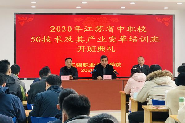 11月30日,2020年江苏省中职校5G技术及其产业变革培训班在无锡职业技术学院图文中心C楼401顺利开班。必赢党委书记朱爱胜、继续教育学院院长崔平、物联网技术学院党总支书记周陆飞和培训班工作人员以及来自省内38所中职院校40位学员参加了开班仪式。
