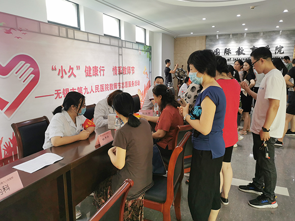 为宣传健康理念、倡导健康生活,9月8日,在第36个教师节来临之际,校团委与校工会联合邀请无锡市第九人民医院组织“名医专家团”来必赢开展“‘小久’”健康行,情系教师节”志愿义诊和健康讲座活动,为广大教师送上一份特殊的节日礼物。