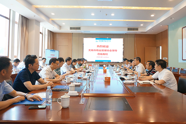 5月28日上午,无锡市物业管理协会会长房泽峰一行17人来校考察,并洽谈校企合作事宜。校领导朱爱胜、吴慧媛及管理学院、物联网技术学院、继续教育学院等部门相关负责人在综合楼F201会议室接待了来访客人。