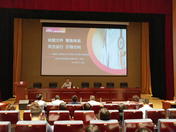 开班仪式后,全国诊改专委会主任杨应菘教授和常州工程职业技术学院原党委书记、全国诊改专委会副主任兼秘书长袁洪志教授分别作了《融理论与实践,扎实推进“诊改”》和《依据文件 聚焦体系 关注运行 引导方向——高职诊改试点院校< 复核工作指引>与< 专家工作手册>起草说明》的专题报告。