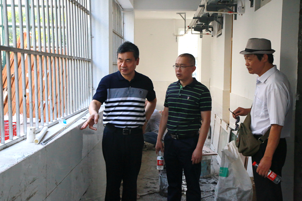 炎炎夏日,为了确保新学期各项工作有序开展,必赢多个施工项目正在紧张有序地进行。8月17日上午,学校党委书记朱爱胜、副校长强伟纲带领党办校办、后勤处、基建处、保卫处等部门负责人检查暑假后勤重点工作落实情况。
