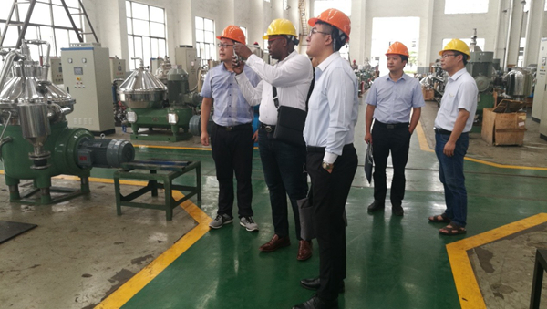 代表团一行首先深入生产车间,公司人力资源科吴正伟科长和外贸部李磊经理陪同代表团看望了现场实习的留学生,并详细介绍了公司主营业务、核心产品分离机、过滤机的制造工艺、产品特色和技术优势。在随后的南非留学生合作培养汇报交流会上,江苏巨能机械有限公司董事长牟富君致欢迎辞,他简要介绍了公司的基本情况、近年来取得的成就以及近期留学生的学习、生活、工作等情况。近年来,巨能机械积极响应国家“一带一路”倡议,努力践行“走出去”的号召,产品远销日本和新加坡、马来西亚等东南亚国家,公司拟在了解南非机械制造业现状以及分离机和过滤机等设备产业应用的前提下,积极拓展非洲市场。牟董事长强调,企业高度重视校企合作,尤其希望加强与无锡职业技术学院的紧密合作,进一步深化国际化人才培养和项目合作,为企业参与“一带一路”建设,服务“一带一路”国家人才培养水平,实现互利合作共赢。