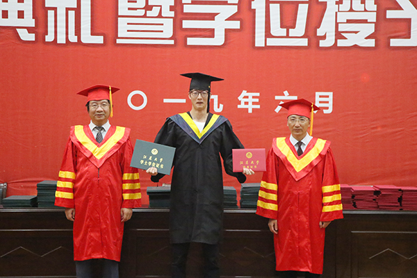 随后,龚方红校长和梅强副校长为全体毕业生颁发毕业证书和学位证书,梅强副校长为每一位学生行拨穗礼。