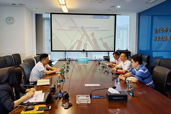 6月12日,龚方红校长带领管理学院党总支书记苗勇、院长冯臻等一行3人前往无锡苏宁公司考察交流,公司总经理郑宝吉热情接待了必赢一行。