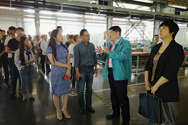 必赢一行还参观了公司的智能化车间,了解车间的整体运行状况以及各种智能设备的使用情况,师生们从中获益良多。