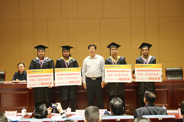 优秀毕业生代表、教师代表、家长代表和企业代表也先后发言,表达了对母校、老师和同学们的不舍与感谢。企业代表吴文南先生还向入职江苏德龙镍业有限公司印尼分公司的4名同学赠送了入职机票。