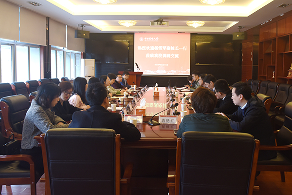在中国药科大学,该校党委副书记王正华及教务处、学工处、团委、理学院相关负责人与必赢调研团一行进行了座谈交流。党委副书记王正华代表学校热烈欢迎必赢考察组,全面介绍了中国药科大学的发展历程、办学特色等情况。教务处处长唐伟方就该校创新创业工作进行了详细介绍,从课程设置到训练计划都有精细化安排,中国药科大学在全国创新创业各项赛事中取得了丰硕成果。理学院副书记周新虎就该校的大学生宿舍文化建设特色进行了交流,重点介绍了院内开展的“秀我家,寝室文化大赛”、“摘星计划”、“梦药起航”、“民族一家亲摄影大赛”等活动。团委副书记徐志成就该校的团学工作及创新举措作了深入交流。