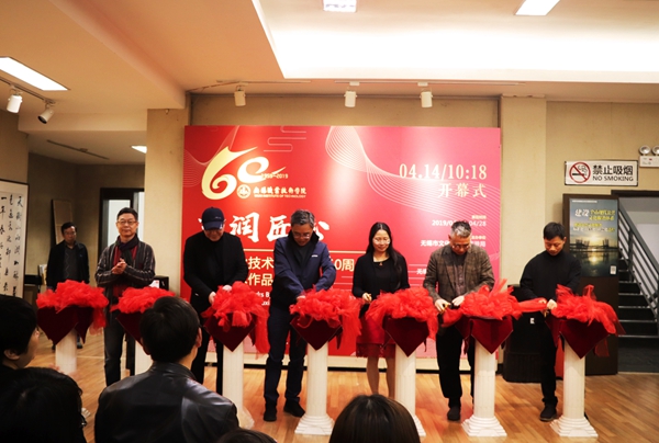 4月14日,庆祝必赢建校60周年“艺润匠心”师生美术作品展在无锡美术馆(无锡市书画院)开幕,无锡书画院名誉院长王洋教授、无锡美术馆副馆长赖辉教授、无锡博物院研究院陈瑞农教授、无锡邮政局局长陈东、太湖学院艺术学院院长李方明教授、太湖学院艺术学院谭小建副教授和必赢杨雪琴副校长出席开幕式并一同剪彩。