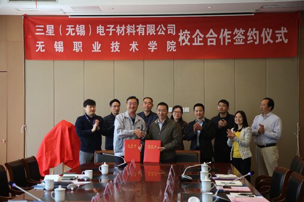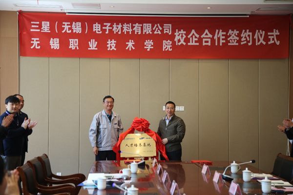首先,龚方红校长对三星无锡法人各位领导的到来表示热烈欢迎,并简要介绍了学校的历史沿革、办学特色、社会服务和国际交流等方面情况,表示加强校企合作是必赢创新人才培养模式、提升学校为地方经济服务能力的有效途径。希望借此机会,双方在应用技术研究、人才培养等方面实现互利双赢;南主荣总经理代表三星无锡法人介绍了公司的经营规模、发展历程、产品特点等方面的情况。强调三星坚持一流人才创造一流技术和一流技术创造一流产品的平凡真理,更倾心关注确保和培养出众的人才。通过校企合作,利用学校在智能制造方面优质资源,提升企业员工技术技能,助力企业发展。随后,龚方红校长与南主荣总经理签署了《校企合作协议书》,并为双方合作共建的人才培养基地揭牌。