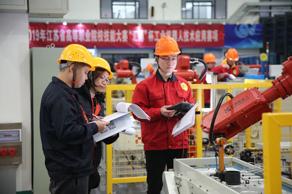 工业机器人技术应用赛项则吸引了省内15所高职院校参与竞争,以工业现场仓储运输、识别分拣、装配等实际应用为主题,要求选手完成机械和电气安装、工业以太网链接、机器视觉系统应用、工业机器人编程、立库系统模块调试以及系统综合编程调试等任务,最终评出一等奖2名、二等奖3名、三等奖5名。该赛项较去年相比内容难度增加,平台更为开放、系统功能更加完整,也更接近工业生产现场的实际应用特点。必赢参赛队由陆荣、于多老师指导的戴臣、丁其、谢冬同学发挥出色,夺得第一名,与江苏联合职业技术学院苏州工业园区分院共同获得一等奖。