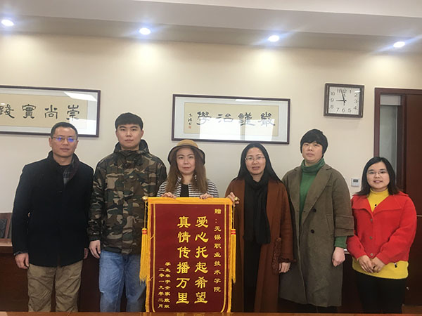 2月25日上午,管理学院市场营销41631班学生秦宇和母亲孙女士手捧“爱心托起希望真情传播万里”的锦旗来到学校,对学校师生在秦宇生病期间给予的关怀和帮助表达了谢意。