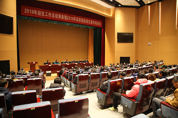 为总结2018年学校招生工作,并对2019年招生工作提前谋划,学校于1月10日下午在综合楼一楼报告厅召开了2018招生工作总结表彰暨2019年高职提前招生培训动员会。校领导朱爱胜、周桂瑾、杨雪琴、强伟纲、吴慧媛、徐浪及各片区招生骨干等170余人参加了会议。