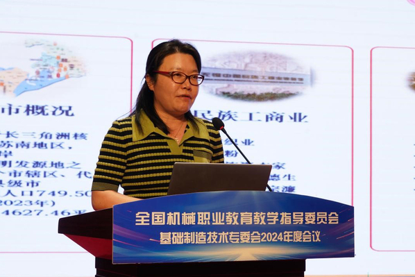 陈梅兰向大会致欢迎词,表示本次会议的召开为全国各高、中职院校、行业企业加强联系协作,共同探索基础制造技术人才培养的新模式、新方法,推动基础制造技术专业的发展和职业教育人才培养质量的提高提供了交流的平台。