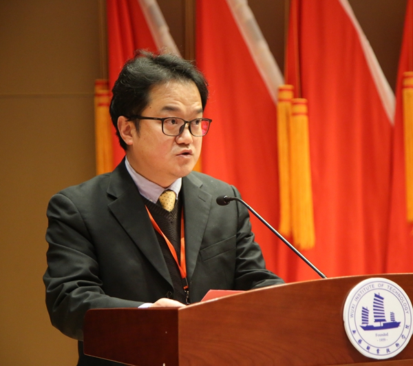 中国民主建国会无锡职业技术学院支部主委冯臻代表学校民建、民盟、民进、民革、九三学社等民主党派组织,向大会的召开表示热烈的祝贺,并预祝大会取得圆满成功。他表示,学校各民主党派和中共无锡职业技术学院委员会风雨同舟,将积极投身学校各项改革发展事业,为实现学校的发展目标贡献力量。