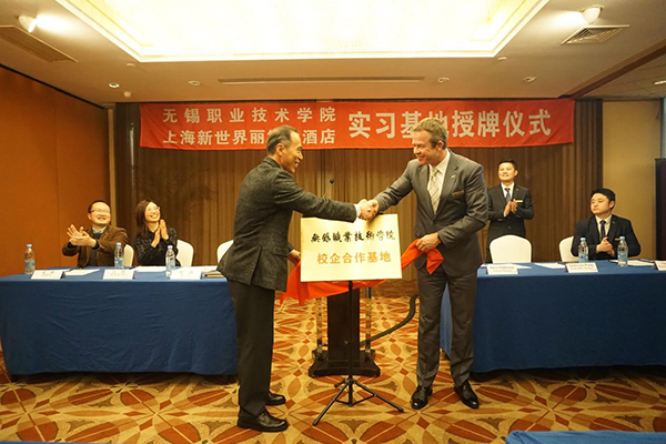 11月26日下午,外语与旅游学院在新世界丽笙大酒店举行校外实习基地授牌仪式。学院党总支书记江铭、院长杨丽、副院长梁峰、旅游系主任许刚及相关老师一行7人与酒店总经理Steve Finlayson、人力资源总监Jutta及相关部门经理6人出席了授牌仪式,与会者还有学院实习生16人及留任毕业生代表2人。