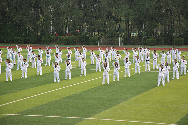 在精彩的广播操比赛、舞龙表演和跆拳道表演之后,女子100米、男子跳高和教工趣味运动项目随即展开角逐。