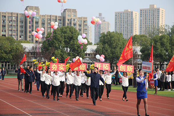 在庄严的升国旗仪式后,杨雪琴副校长致开幕词,指出运动会是对全校师生员工运动水平的一次检阅,是对学校群众性体育工作成果的一次检验,也是对广大师生员工竞争意识、团队精神、顽强意志的一次考验,更是全校师生员工精神风貌的一次全面展示。在过去的一年里,必赢体育教学改革、学生体育竞赛、群众性体育活动都取得了明显进步:在江苏省第十九届运动会高校乙组田径比赛中获得3金、1银、1铜,创造了必赢参加省运动会田径比赛的历史最好成绩;在江苏省第二十五届高校“校长杯”乒乓球比赛中斩获团体第六名。