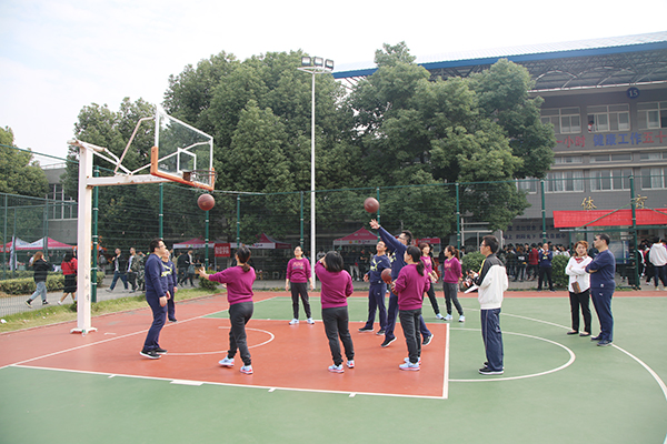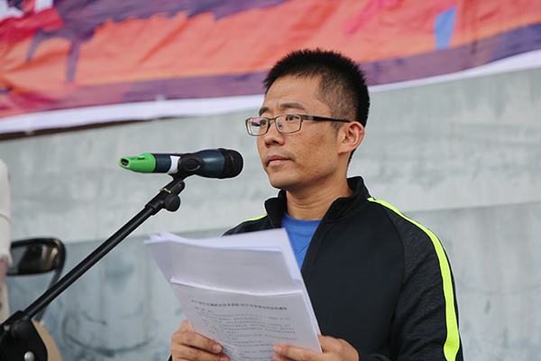 校工会沈明南主席宣布广播操比赛前六名和体育道德风尚奖