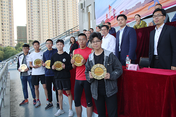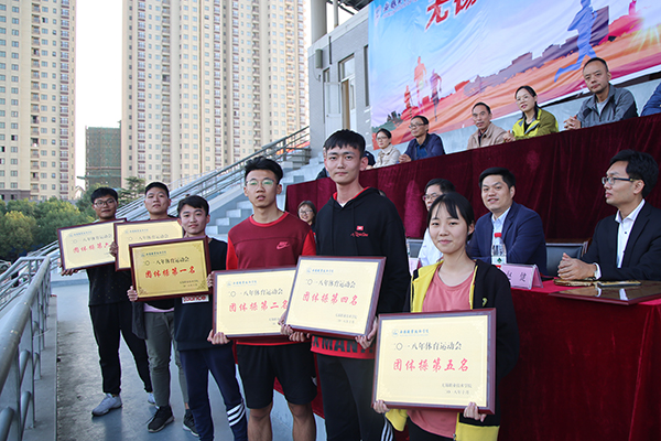 闭幕式由体育部直属党支部书记吴斌主持。校工会主席沈明南宣布了体育道德风尚奖和广播操比赛名次;总裁判长冯伟宣布了男、女团体总分前六名,与会领导向获奖集体和个人颁发了奖牌和证书。