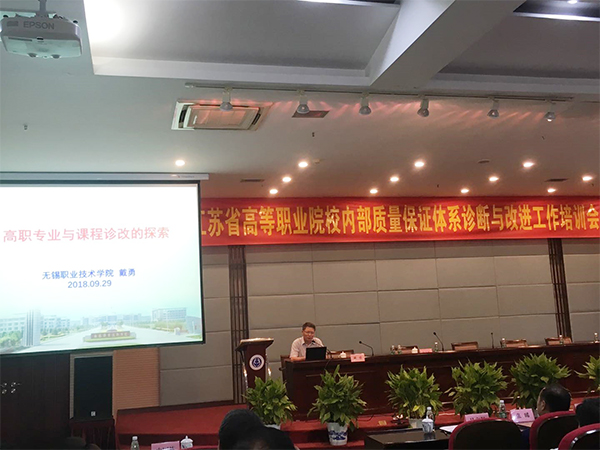 根据《江苏省高等职业院校内部质量保证体系诊断与改进工作专家委员会》(苏高诊改[2018]3号)通知,为全面深入推进全省高职院校诊改工作,省高职院校诊改专委会受江苏省教育厅委托,于2018年9月29日组织召开了江苏省高等职业院校内部质量保证体系诊改工作培训会暨专委会工作会议。江苏省教育厅王成斌副厅长、江苏省教育厅高等教育处邵进处长、江苏省高职诊改专委会主任委员丁晓昌、江苏省高职诊改专委会副主任委员史国栋等领导出席会议并讲话。必赢龚方红校长率教务处、人事处、信息化中心、学工处、校办、质控部等部门相关部门负责人全程参加了此次会议。