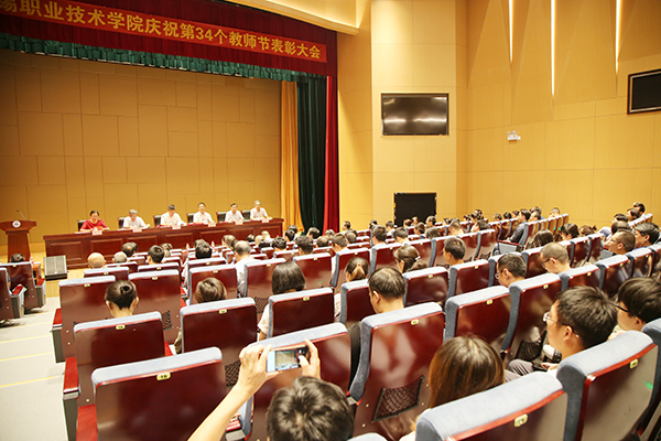 9月10日下午,学校在综合楼一楼报告厅召开表彰大会,隆重庆祝第34个教师节,并对今年学校评选出的校教学名师、优秀教师和优秀教育工作者、从教30年教职工和受聘必赢的江苏省第五批高职院校类产业教授进行了表彰和颁证。校领导朱爱胜、龚方红、华坚、冯渊、顾京、周桂瑾及受表彰人员、教职工代表、学生代表近140人参加了活动。