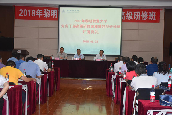 8月25日上午,黎明职业大学党务干部高级研修班和学工干部职业能力提升培训班在必赢国际交流中心二楼报告厅开班,来自黎明职业大学的党务和学工干部共71名学员参加了开班典礼。