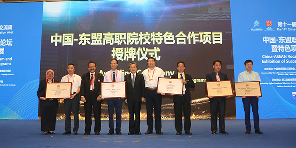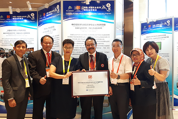 龚方红校长还代表必赢参加了首批20个“中国-东盟高职院校特色合作项目”授牌仪式,东南亚教育部长组织秘书长加多特先生和中国—东盟中心秘书长陈德海先生为必赢“中印尼旅游与酒店管理专业人才培养项目”授牌。