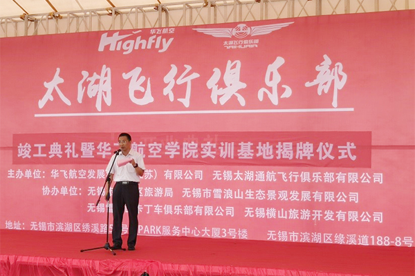 6月30日,山水城旅游度假区雪浪山举行了太湖飞行俱乐部竣工典礼暨华飞航空学院实训基地的揭牌仪式,学校党委书记朱爱胜应邀参加太湖飞行俱乐部的剪彩仪式,校长龚方红代表学校对太湖飞行俱乐部与航空学院实训基地的正式运行致辞祝贺,并参加华飞航空学院实训基地的揭牌仪式。