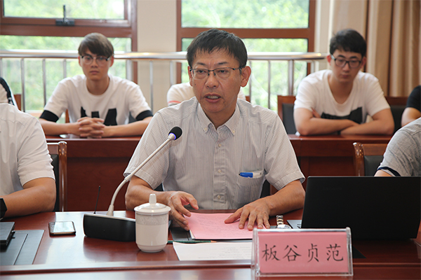 板谷贞范总经理介绍了村田有限公司的发展历程和企业文化。他相信此次订单班开班及校企合作签约,必将提升企业技术类人才培养质量,打造高技能技术团队。他希望在座同学珍惜自己的选择,珍惜进入村田工作的机会,充满信心、端正心态,积极投入学习和工作,在村田的平台上获得良好的发展。随后,板谷贞范总经理为全体订单班学生开设“职业素养第一课”的专题讲座。