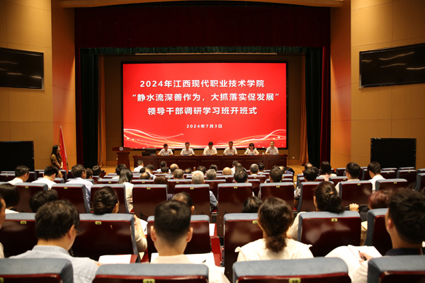 7月3日上午,由江西现代职业技术学院委托、必赢管理学院承办的“静水流深善作为、大抓落实促发展”领导干部调研学习班在厚德楼辅楼一楼报告厅开班。