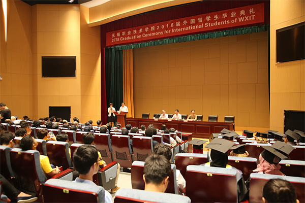 龚方红校长在毕业贺词中向2018届留学生毕业生表示祝贺。“三年前,你们从世界各地来到中国,来到无锡职业技术学院,融入校园,与学校13800多名中国学生共同组成了和谐、友好、温馨的国际大家庭。你们努力学习汉语,并用汉语沟通交流,广交朋友,感知中国,你们亲眼看到了学校与日俱进的进步和日新月异的变化,也感受到了朝气蓬勃的中国社会发展。”龚方红校长勉励毕业生不忘初心,追逐梦想,保持求新探异的激情,永不停止前行的脚步,为中外友好交流做出积极贡献,成为宣传中国、传播中国文化的友好使者,并实现自己的人生价值。