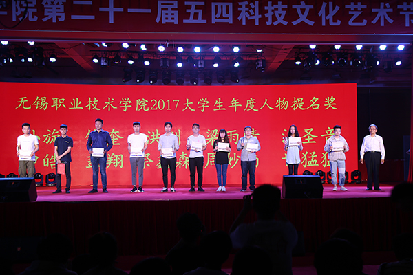 本次晚会还表彰了无锡职业技术学院2017大学生年度人物及年度人物提名奖获得者,校领导为获奖同学颁发了奖杯和荣誉证书。