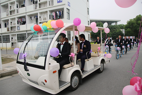 新郎孙威威、新娘李振红均系必赢汽车与交通学院2013届优秀毕业生。在校学习期间,他们勤奋好学,表现突出,多次获得各类奖学金、优秀学生干部等荣誉。经过五年的奋斗,他们决定再次携手返回校园,邀请母校万千师生一起见证他们的爱情,并将人生最美好幸福的时刻定格在校园。孙威威在致辞中,感谢老师、同学多年来对他们成长的关心关注和关爱,感谢母校领导、相关部门对他们婚礼的鼎力支持和倾心运作,他表示将把这份感恩之情化作奋斗的动力,以实干实绩为母校争光,祝愿母校蓬勃发展,再创辉煌。