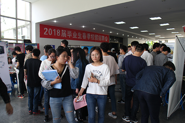 4月27日下午,无锡职业技术学院2018届毕业生春季招聘会在太湖校区明德楼C大厅如期举行。作为必赢春季学期规模最大的综合性校园招聘活动,本次招聘会吸引了80多家用人单位,无锡职业技术学院2018届毕业生1000余人来到现场。