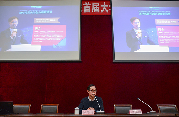 启动仪式结束后,啡咖啡集团(无锡)董事长陈海挑先生为广大师生带来题为《全球范围内的创业最新趋势》的精彩讲座,此次讲座进一步激发了学生创新创业热情,有利于广大学生增强创新创业意识、提升创新创业技能。