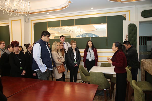 师生代表团参观了必赢智能制造工程中心、图书馆、国际教育学院、外语与旅游学院酒店管理专业实训室、无锡名人苑,对必赢优美的校园环境及先进的实训设备留下了深刻印象。在酒店管理专业实训室参观期间,代表团师生与中国学生开展了以中国传统餐具使用礼仪为主题的文化交流体验活动,零距离地体验中国传统餐饮文化,这既为爱尔兰师生打开了一扇了解中国的窗口,也让中国学生更加深入地认识祖国的传统文化,增强了民族自豪感,活动中双方院校师生热烈交流,对未来合作充满期待。
