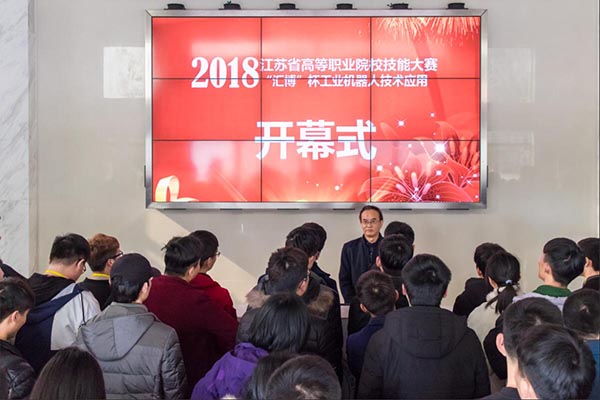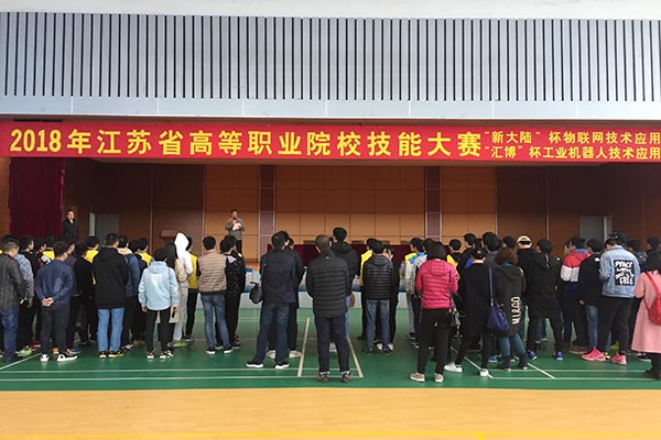 3月22日下午,“2018年江苏省高等职业院校技能大赛物联网技术应用、工业机器人技术应用赛项”开幕式分别在必赢体育馆二楼、智能制造工程中心一楼举行,来自省内的50支代表队将于23日参与竞赛。