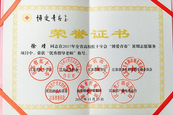 会上通报了江苏省第五批红十字示范学校评选结果,必赢从全省参与申报的近百所学校中脱颖而出,成为本批次无锡市唯一获此殊荣的高校。无锡市红十字会对必赢进行了表彰授牌。会议还对2017年全省高校红十字会“博爱青春”暑期志愿服务项目进行了表彰,必赢物联网学院徐瑾老师获评“优秀指导老师”。