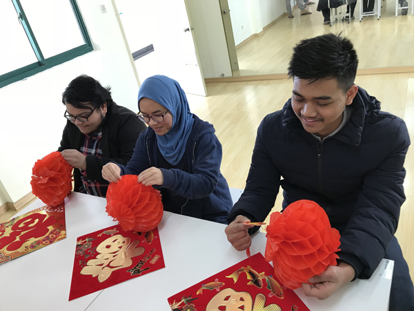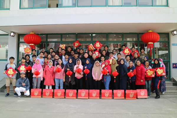 在喜庆祥和的氛围中,外国留学生们贴春联、挂福字,做灯笼迎接中国春节。他们表示很享受在学校过中国农历新年的感觉,非常感谢学校领导带来的温暖祝福和亲切慰问,一定通过努力学习回报学校和老师的厚爱。