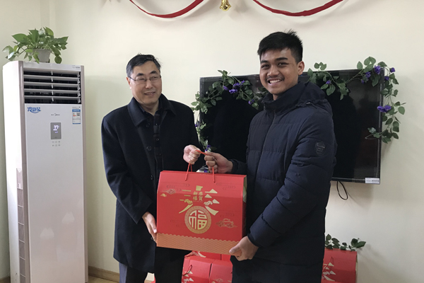 2月14日上午,冯渊副校长率国际教育学院教师慰问了寒假期间留校的外国留学生,并发放新春礼盒与留学生们亲切互动,预祝他们戊戌年春节快乐。