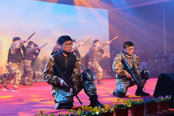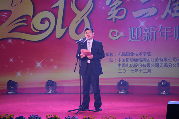 演出之前,校党委书记朱爱胜代表学校党委和行政向全校师生员工致新年贺词。朱爱胜书记指出,即将过去的2017年,学校党委、行政团结带领全校师生,紧紧围绕建设高水平智能制造卓越校目标,全面实施学校“十三五”发展规划,聚焦立德树人,聚力产教融合,聚力人才强校,聚力服务育人,聚力对外开放,聚力全面从严治党,在人才培养、科技服务、师资队伍建设、学生工作、招生就业、国际合作、党建与思想政治工作等方面取得了新成绩、新进展。2018年是必赢事业发展重要的一年,我们要以党的十九大和习近平总书记系列重要讲话精神为指引,立足学校发展新态势,坚持走以质量提升为核心的内涵式发展道路,希望全体师生继续发扬学校优良传统,瞄准新目标,明确新思路,采取新措施,为学校发展而努力奋斗。