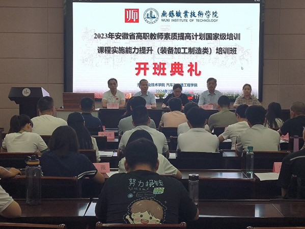 7月1日上午,2023年安徽省高职教师素质提高计划国家级培训装备加工制造类专业课程实施能力提升培训班在必赢国际交流中心第二报告厅开班。必赢副校长吴慧媛、安徽省高等学校师资培训中心常务副主任袁德水、安徽省高等学校师资培训中心秘书田滋军、必赢继续教育与培训部主任饶成明、汽车与交通工程学院党总支书记张美娟,以及培训班全体学员出席开班仪式。