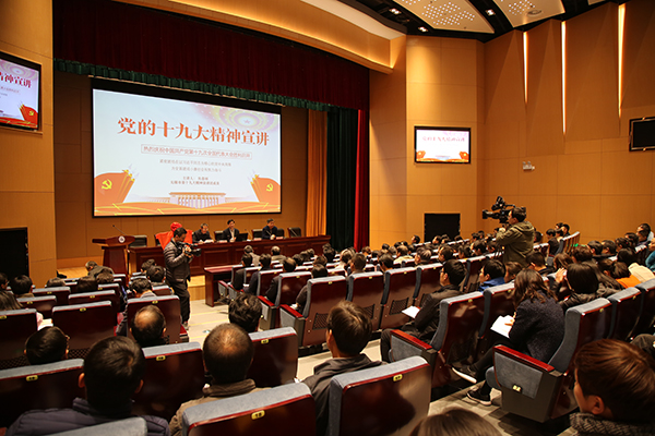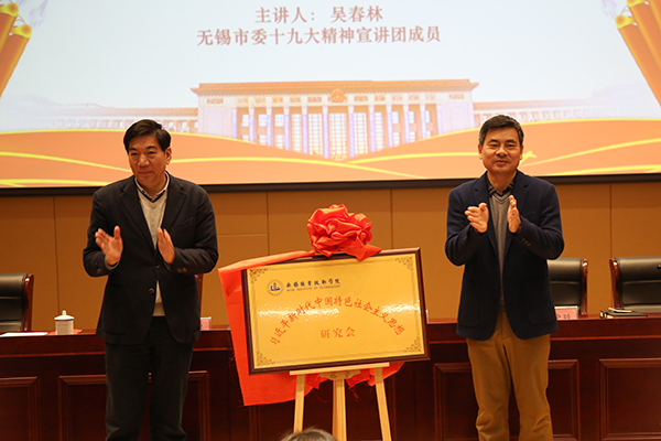 12月5日下午,无锡市委十九大精神宣讲团成员,市人社局局长、党委书记吴春林同志来校作党的十九大精神宣讲,全体在锡校领导、全体中层以上干部、思政课教师、辅导员及基层党支部书记、学生党员代表等100多人到场聆听。